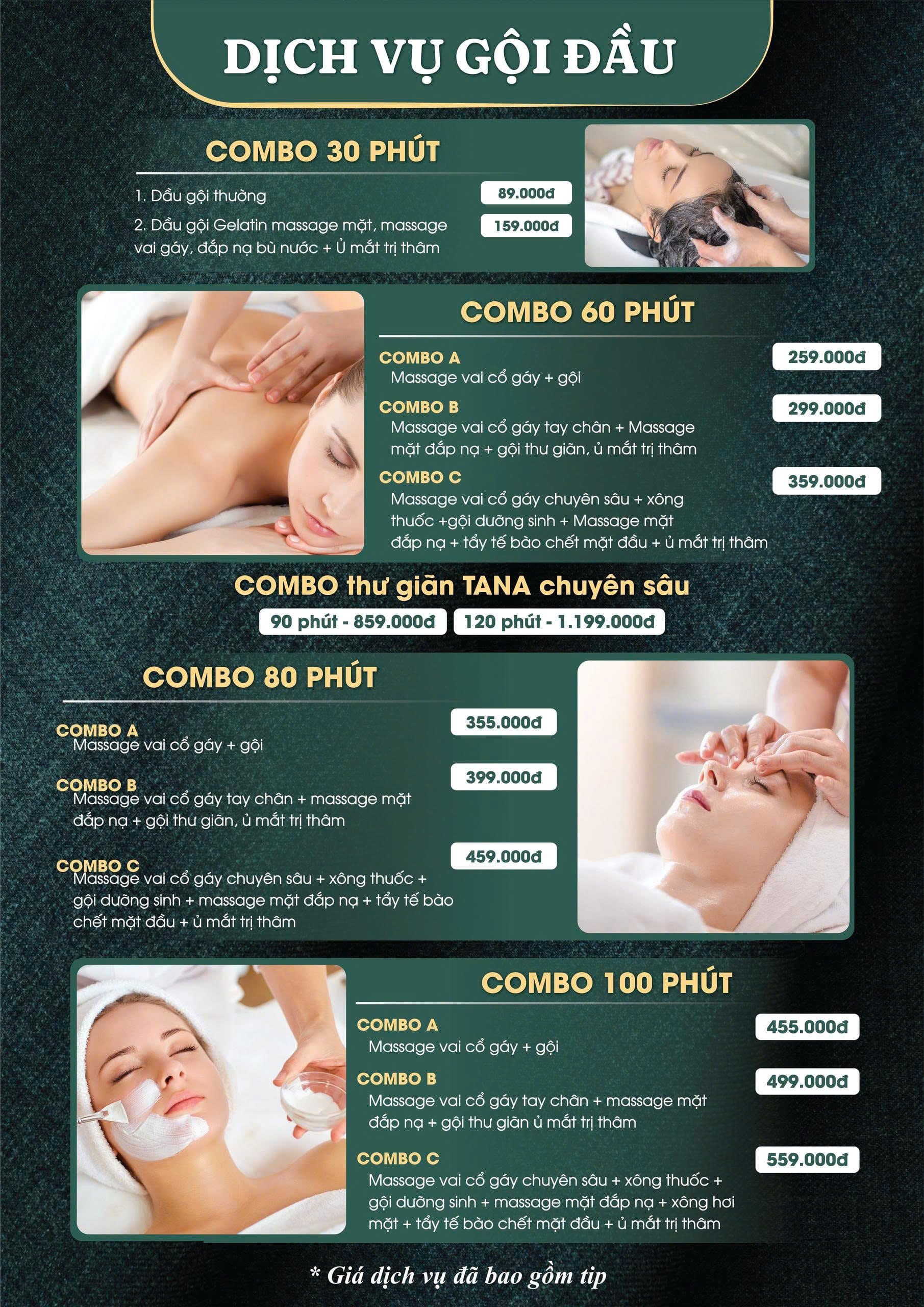 "Thư giãn – Làm đẹp – Tái tạo năng lượng tại Tana Spa – Nơi bạn tìm thấy sự cân bằng hoàn hảo giữa tinh thần và cơ thể. Với không gian yên tĩnh, đội ngũ chuyên viên tận tâm và liệu trình chăm sóc chuyên sâu, chúng tôi mang đến cho bạn trải nghiệm làm đẹp toàn diện và thư thái tuyệt đối."